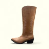 Bota Texana Dallas de cuero natural con diseño en la caña y tacón de madera. Bota Texana Dallas de cuero natural con diseño en la caña y tacón de madera.